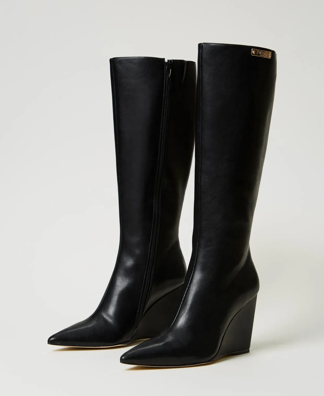 Bottes Montantes Avec Semelle Compensée Et étiquette Siglée