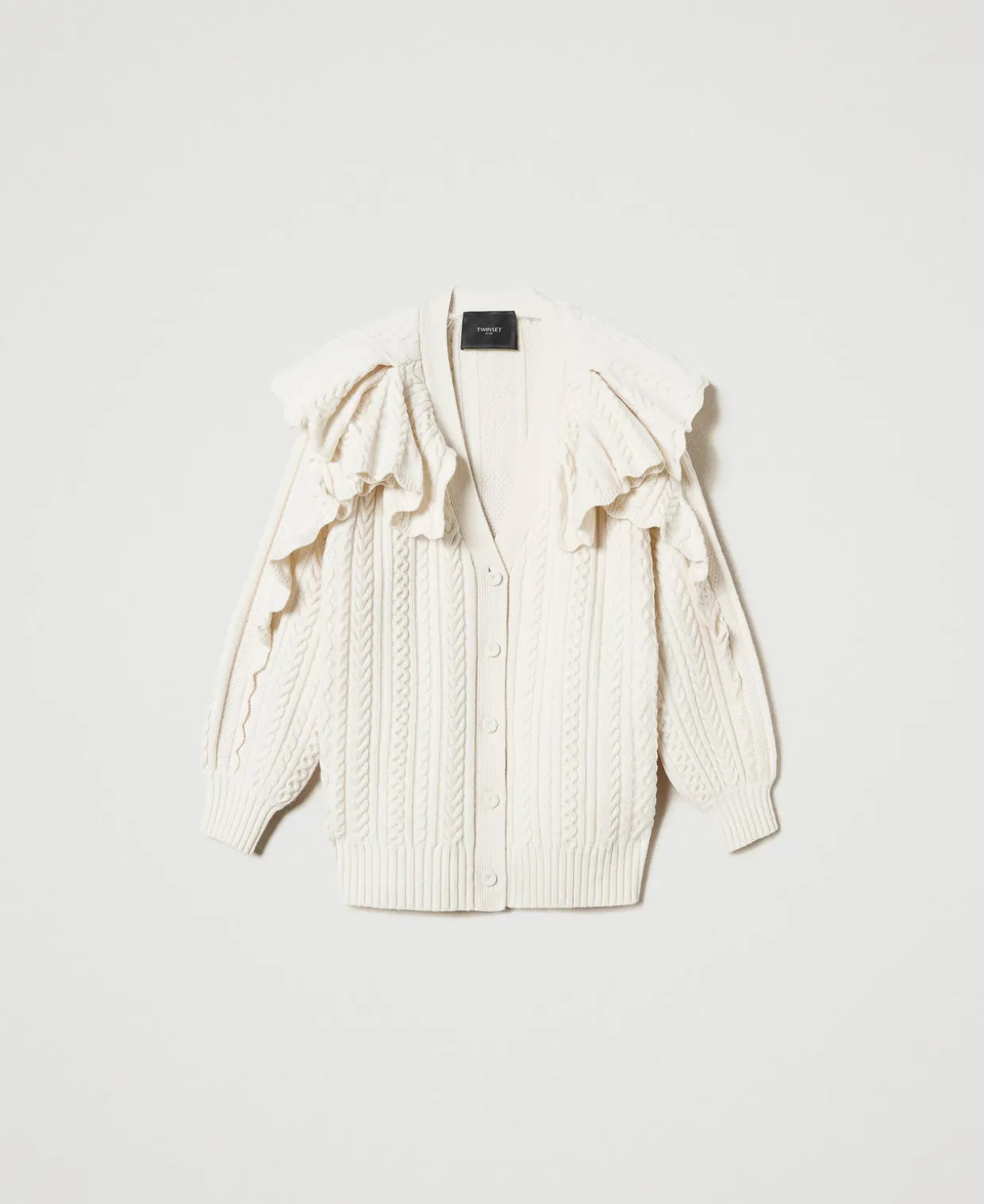 Cardigan En Laine Mélangée Avec Volants
