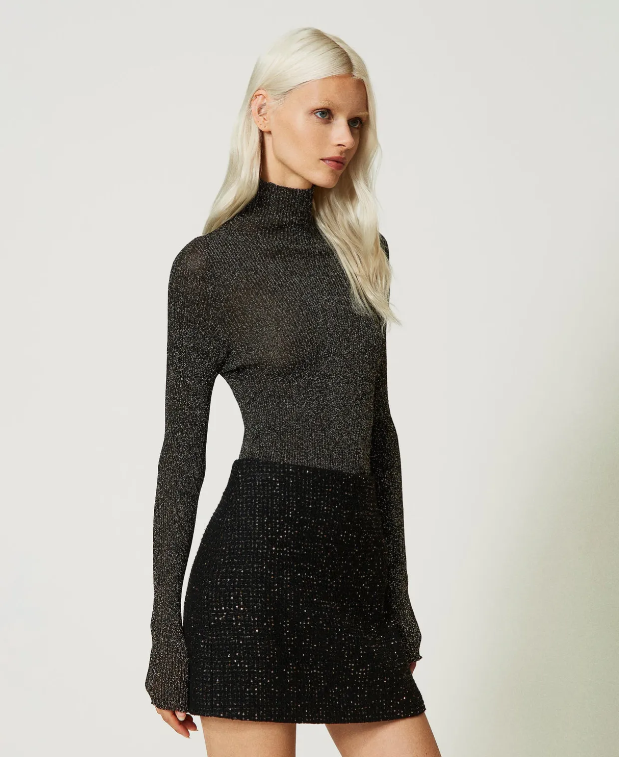 Pull Col Montant En Lurex Côtelé