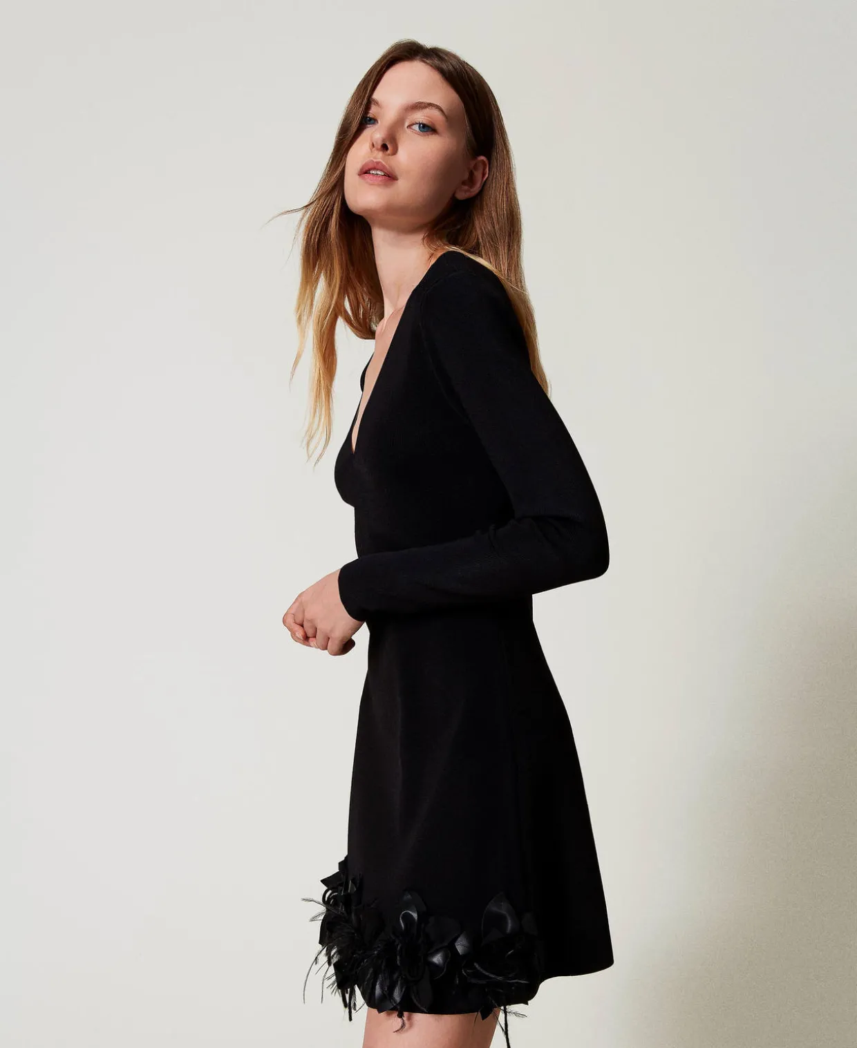 Robe Courte En Maille Avec Fleurs Et Plumes